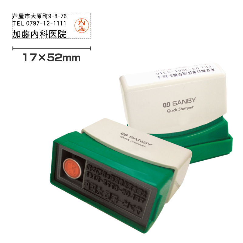 住所印とネーム印が同時に押せる便利なスタンプ。会社名と担当者が一目でわかります。ネーム印は取り外し・交換可能なので、担当者ごとにスタンプを作る必要が無く経済的です。
