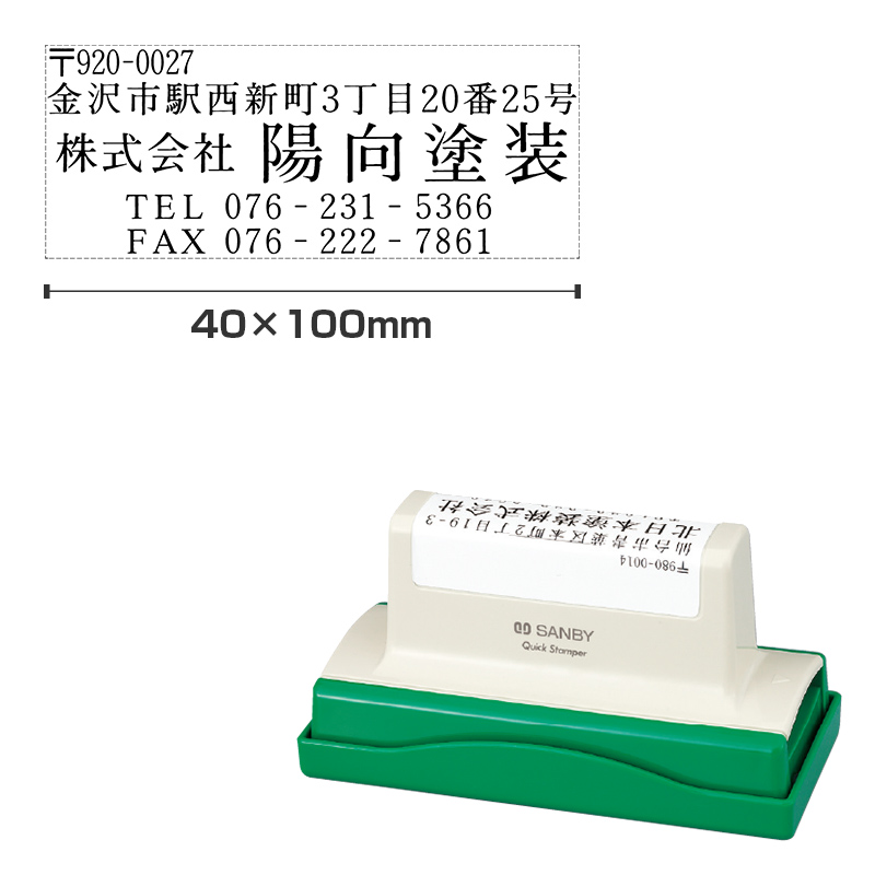 ポスターや大きいチラシに押す住所印や回覧印などに。住所や社名以外に、ロゴやキャッチフレーズなどを入れても。スタンプ台要らずの浸透タイプだから連続なつ印にもオススメ。事務作業の効率化に最適なスタンプです。