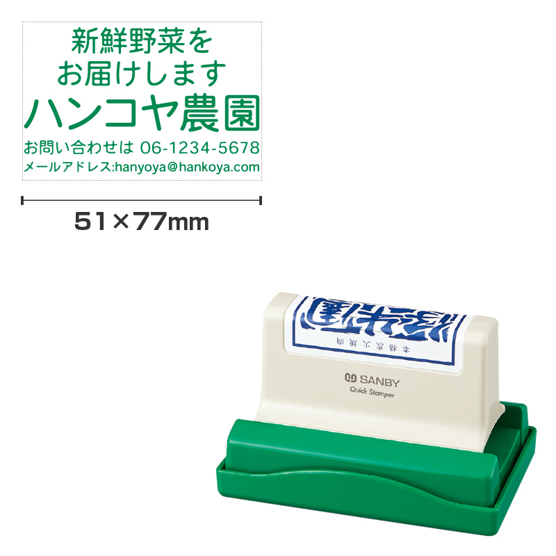 ポスターや大きいチラシに押す住所印や回覧印などに。住所や社名以外に、インボイス番号やキャッチフレーズなどを入れても。スタンプ台要らずの浸透タイプだから連続なつ印にもオススメ。事務作業の効率化に最適なスタンプです。
